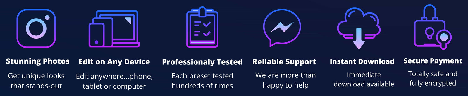 The Mega Bundle includes all the 13 packs in the Signature Collection, a total of 300 Presets.